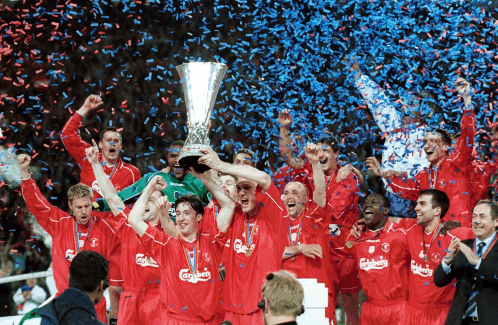 4 Liverpool 5-4 Alavés (final Copa de la UEFA 2001): Javi Moreno fue máximo goleador de Segunda B con el Córdoba CF. Ese era su nivel. Pero antes de eso compartió equipo con Maldini, Costacurta, Redondo, Pirlo, Shevchenko o Inzaghi. Y es que a Javi Moreno lo fichó el gran AC Milan. Y todo fue por aquella final. Aquella bendita final. Que el Alavés echase al Inter o que le metiese cinco al Kaiserlautern parecía machada más que suficiente. Y lo cierto es que el Liverpool FC de unos imberbes Owen y Gerrard se puso 2-0 arriba a los veinte minutos. Mané, aquel padre-entrenador de barriga y bigote, decide entonces sustituir a uno de sus tres centrales y meter a un delantero centro. Iván Alonso, que así se llamaba el ariete, acorta distancias, pero los ingleses aprietan y ponen el 3-1. Descanso. A la vuelta dos zarpazos de Javi Moreno ponen el 3-3 y le aseguran el contrato de su vida, hasta que Robbie Fowler vuelve a adelantar a los reds y sitúa el 4-3. El asunto parecía acabado, pero un cabezazo de Jordi Cruyff en el último minuto pone el 4-4 y lleva el partido a la prórroga. En el primer aliento del tiempo suplementario el Alavés se quedó con nueve. Por entonces toda Europa se había hecho vitoriana y soñaba con la victoria de David ante Goliat. Cuando los penaltis asomaban tras una esquina, un gol en propia puerta le daba el triunfo a un Liverpool sediento de triunfos. Para los reds fue su primer título europeo en cerca de dos décadas, para Michael Owen un Balón de Oro y para Javi Moreno y el Alavés el momento más feliz de sus vidas.