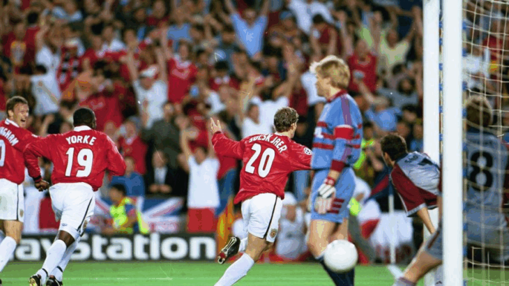 1 Manchester United 2-1 Bayern (final Copa de Europa 1999): El United no contaba ni con Keane ni con Scholes por sanción. A los seis minutos Mario Basler anotaba el gol del Bayern. A partir de ahí los alemanes se dedicaron a ponerle cloroformo al balón. El marco era incomparable. Un Camp Nou a reventar y Pierluigi Collina, el dios de los árbitros, silbato en boca. El partido no acompañaba a lo esperado. Tocaba descanso. A mitad de la segunda parte el United decide venirse arriba y el Bayern pasa a tener varias ocasiones al contraataque. Effenberg lanza una volea que detiene Schmeichel. Scholl lanza una vaselina que da en el larguero tras pase de Basler. El United toca y toca, pero no obtiene respuesta. A falta de diez minutos del final Lothar Matthäus es sustituido. Tiene 38 años, un Mundial, una Eurocopa y un Balón de Oro. Le falta la Copa de Europa. Justo un minuto después el United realizaba su segundo cambio al entrar Ole Solskjaer en lugar de Andy Cole. En el 85’ Jancker remata de cabeza al larguero. Está más cerca el 2-0 alemán que el 1-1. Pero no. Los dioses del fútbol tienen otros planes. En el 91’ Beckham bota un córner que es rechazado por la defensa teutona, Giggs remata a contrapié y el balón es desviado con la testa por Sheringham quien empata el partido. Alex Ferguson (entonces aun no es Sir) ni se lo cree. Habrá prórroga. Pero dos minutos después hay nuevo córner. Beckham lanza otra banana desde la esquina, Sheringham remata de cabeza y ahora es Solskjær el que pone el pie para batir a Oliver Kahn. El United gana 2-1. Dos goles en el descuento. Collina trata de levantar a los futbolistas del Bayern del suelo para continuar el partido. Matthäus llora en el banquillo y Kuffour es un mar de lágrimas dentro del área de castigo del Bayern, en el mismo lugar en el que Sheringham y Solskjaer acaban de obrar el milagro más prodigioso de la historia de las finales. No sé sabe bien cómo el partido se reanudó lo justo para que los futbolistas teutones mandasen el balón de una patada a los infiernos y Ferguson se convirtiese en Sir y llevase a los Diablos Rojos a la conquista de su segunda Copa de Europa.