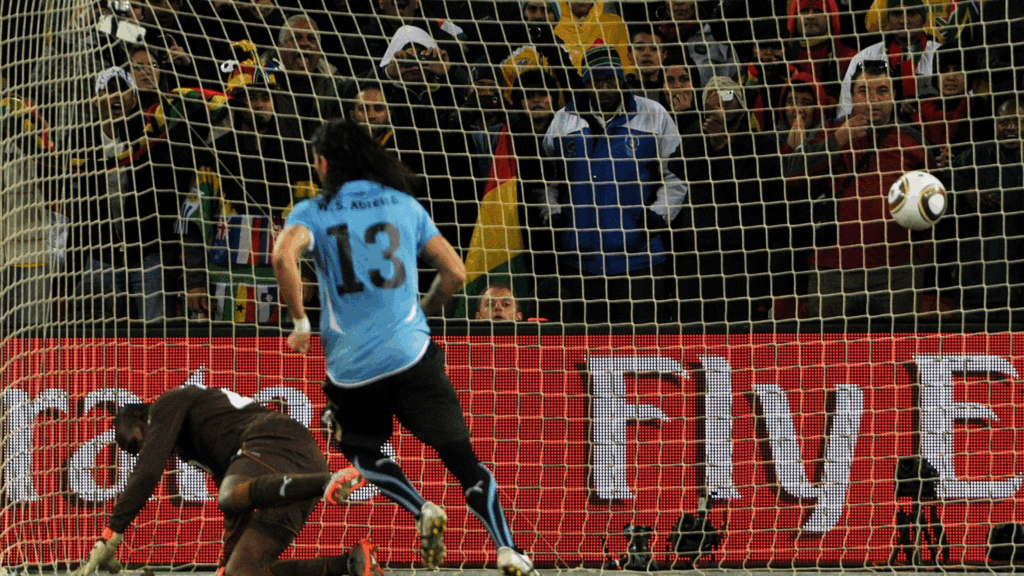 10 Uruguay 1-1 Ghana (cuartos Mundial 2010): El que más me ha costado introducir en la clasificación. A fin de cuentas, no es más que un cuarto de final de un Mundial. Pero fue el lloro de África. El único hasta la fecha (y tiene pinta que el único en mucho tiempo) en el más pobre de los continentes. Y es que sí. Marruecos alcanzó las semifinales en 2022. Pero el Magreb no es el África negra. El África profunda. Y Ghana lo tuvo en la mano. Lo rozó con los dedos. Arrancó eléctrico el partido con claro dominio uruguayo que se fue nivelando poco a poco hasta que Muntari fusiló a Muslera y puso el 0-1 a favor de los africanos. Forlán respondería de falta en la segunda parte y lo que siguió fue un maravilloso correcalles que duró prórroga incluida. Entonces, abocados a los penaltis, en el minuto 120, un remate de cabeza de Ass a puerta vacía encontró la mano de Luis Suárez, quien en vez de delantero ejercía de portero. Era gol. Sería penalti y roja directa para el entonces delantero del Ajax. 85.000 espectadores sudafricanos empujaban a Asamoah Gyan para que anotase el penalti y llevase a África por vez primera a las semifinales de un Mundial. El disparo, seco y fuerte, se estrelló en el travesaño. Habría penaltis y ahí Gyan, valiente, lanzará y anotará el primero, pero dos compañeros suyos no conseguirán batir a Muslera. Sebastián Abreu, a lo Panenka, anotará el quinto y definitivo para dar carpetazo a un encuentro legendario.