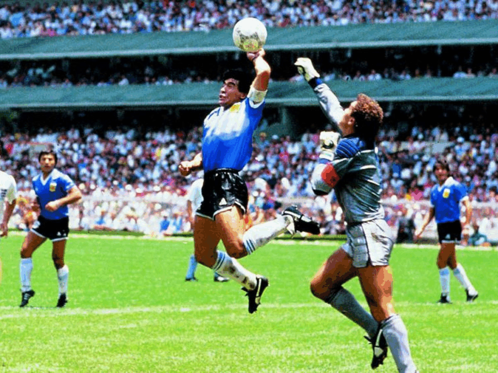 3 Argentina 2-1 Inglaterra (cuartos de final Mundial 1986): Sin lugar a dudas el partido del que más se ha escrito en la historia. La literatura sobre este duelo es soberbia, tanto en castellano como en inglés. El contexto era inmejorable. Cuatro años antes los argentinos habían ocupado las Malvinas, un archipiélago insignificante en la costa argentina, pero de soberanía inglesa. En apenas un mes los ingleses barrieron la ocupación sudamericana. La derrota hizo caer a la dictadura militar y en 1983 se celebraron elecciones libres en Argentina. Para 1986 la herida aun sangraba. Y Maradona estaba presente. Maradona era el potrero. El niño sonriente, pícaro, el gambeteador que creía en la ley de la calle. Un cara sucia. Un irrespetuoso del poder. Y no existe más rectitud y más poder que el anglosajón. Así que aquello no era un partido más. El encuentro fueron dos instantes. ¡Qué dos instantes! Valdano no logró controlar un pase y el balón atrás de un defensa inglés iba a ser despejado por Shilton cuando Maradona se levantó de un salto y golpeó el balón con su mano izquierda simulando que le había dado con la cabeza. “Lo hice con la cabeza de Maradona, pero con la mano de Dios”, diría Diego Armando. Seis minutos después el Barrilete Cósmico cogió un balón en el centro del campo, hizo un giro sobre sí mismo y comenzó una carrera prodigiosa con el balón pegado en su pie izquierdo en el que se llevó por delante a cinco defensores ingleses y al arquero Peter Shilton. Fue la esencia del fútbol. El fútbol como juego, como un pasatiempo azaroso en el que gana el más fuerte o el más listo y donde el resultado es imprescindible. La belleza de la trampa y el arte hecho carne. El fútbol de la infancia. Un fútbol que hoy ya no existe…Volvamos al juego. Bobby Robson realizó un par de cambios ofensivos y los ingleses tomaron el control del choque hasta que a diez minutos del final Gary Lineker, un delantero excepcional pulcro y académico antítesis de Maradona, recortaba distancias. Inglaterra siguió presionando y atacando y los argentinos pusieron en marcha otra treta callejera perdiendo tiempo y simulando calambres. Final. 2-1. Maradona daba otro paso hacia el Olimpo. ¡Malvinas argentinas! se cantaba en el vestuario albiceleste tras la victoria.